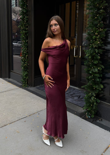 Holiday Asymmetric Cowl Neck Maxi Dress ★ Burgundy