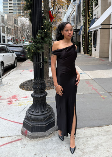Holiday Asymmetric Cowl Neck Maxi Dress ★ Black