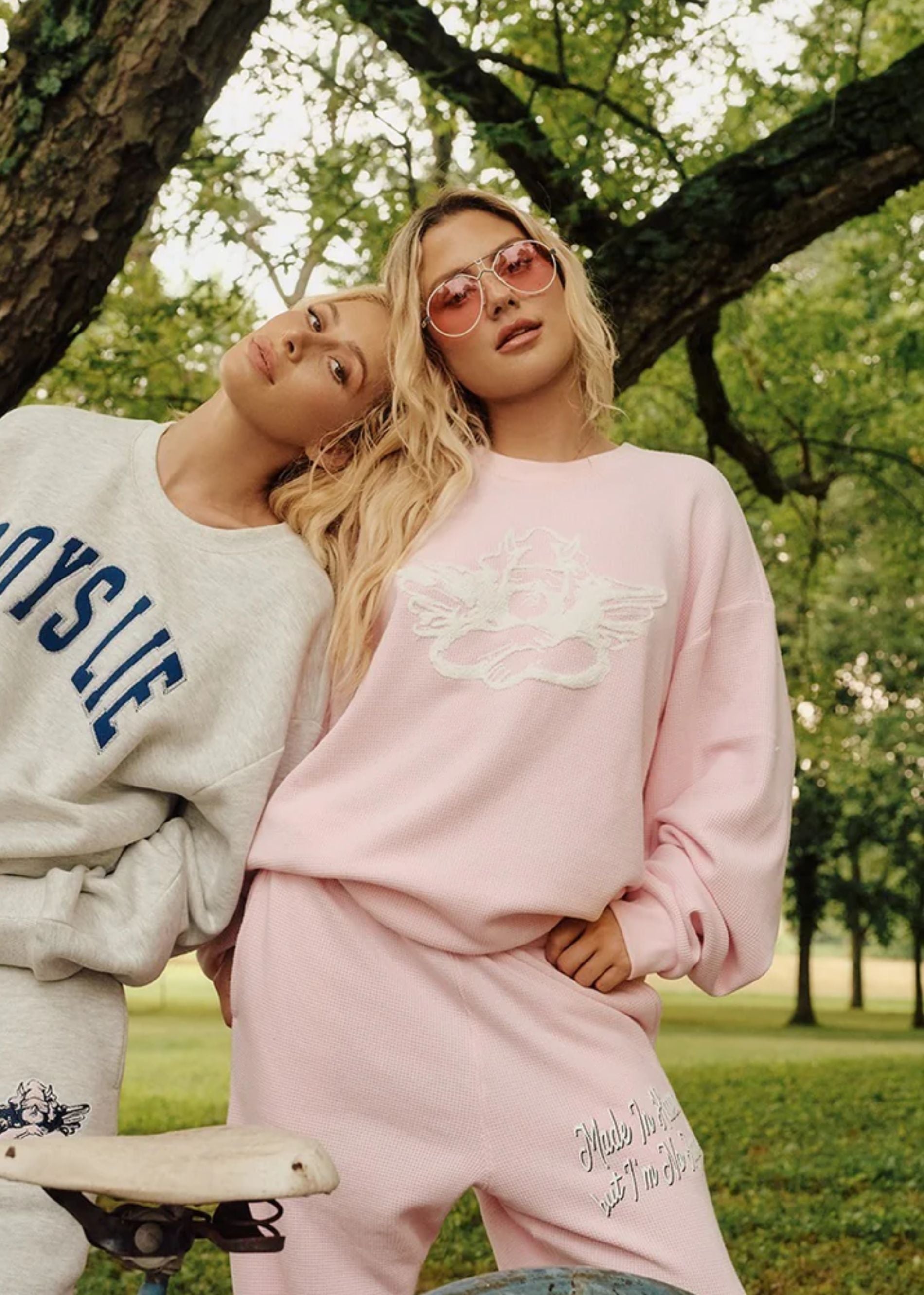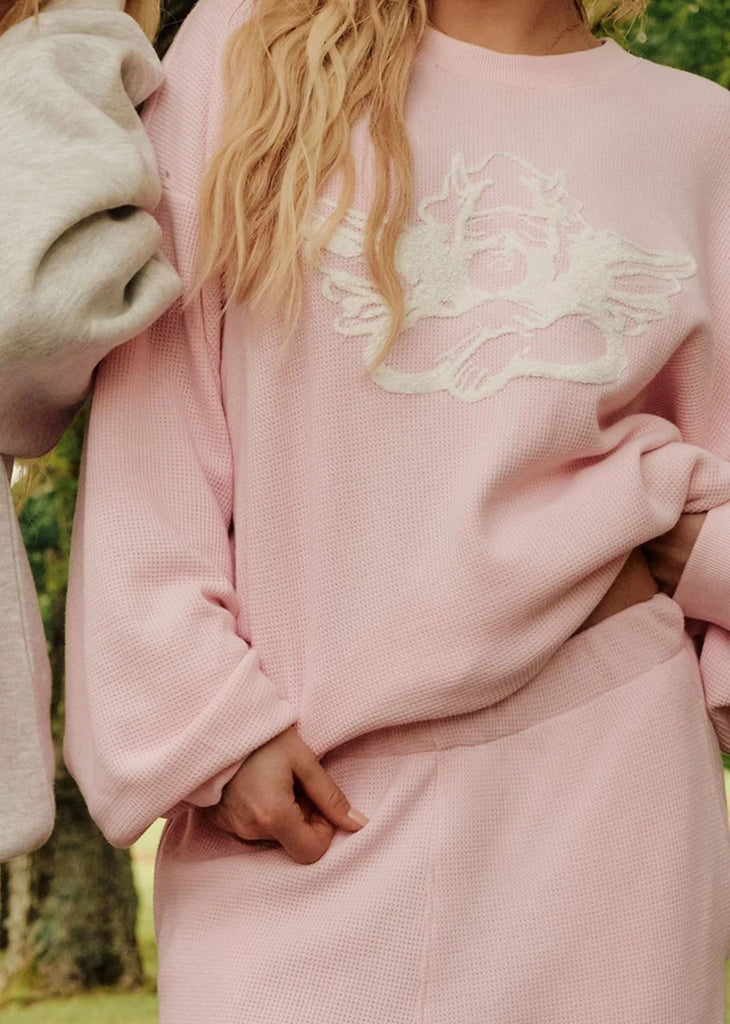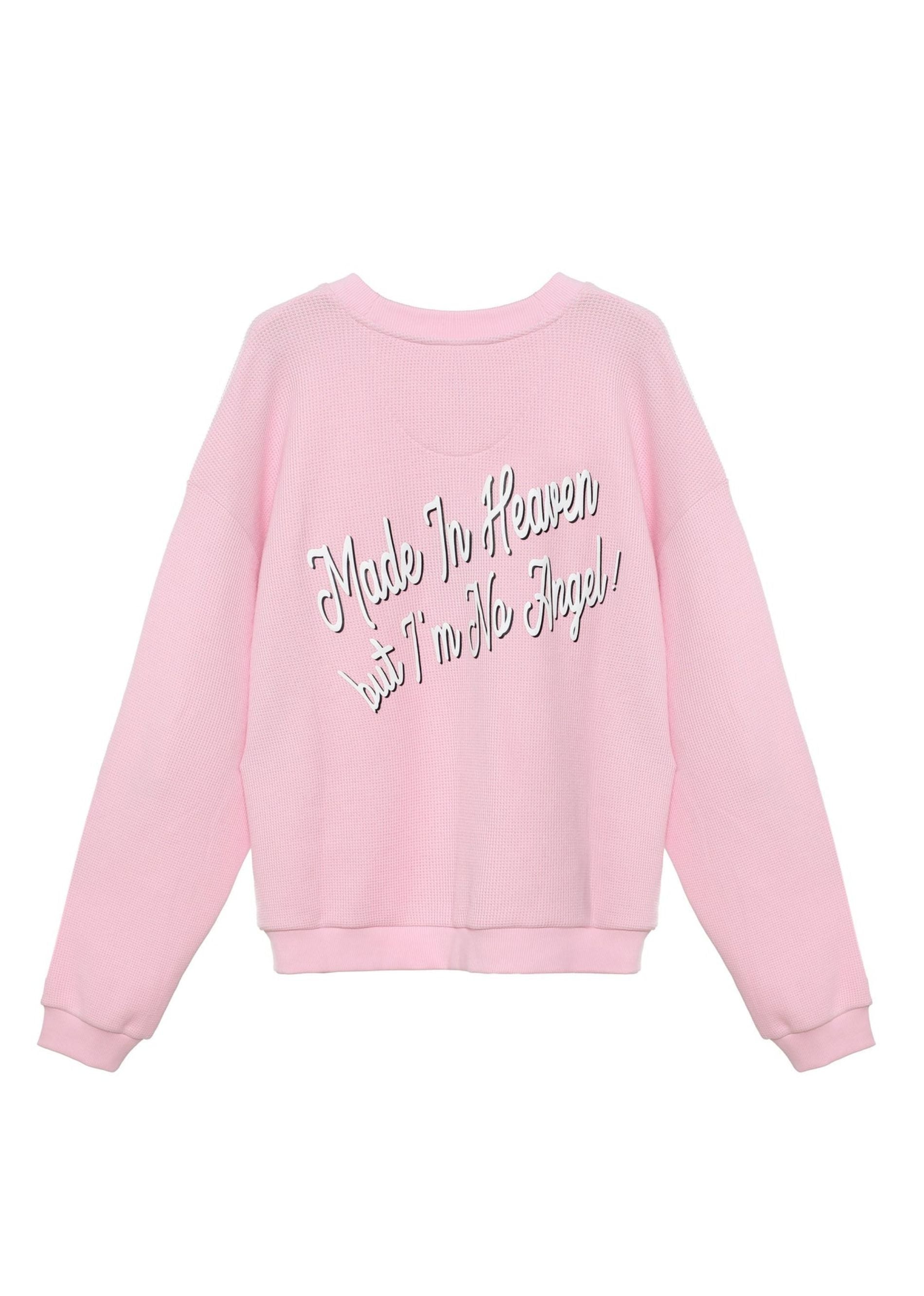 A best-selling style reimagined, the Georgia Rules V2 Kara Crewneck comes in a vibrant bubblegum pink thermal fabric. The front features Boys Lie’s iconic cherub graphic, while the back reads “Made in Heaven But I’m No Angel” for the perfect mix of sweet and sassy. Cozy, eye-catching, and endlessly wearable.