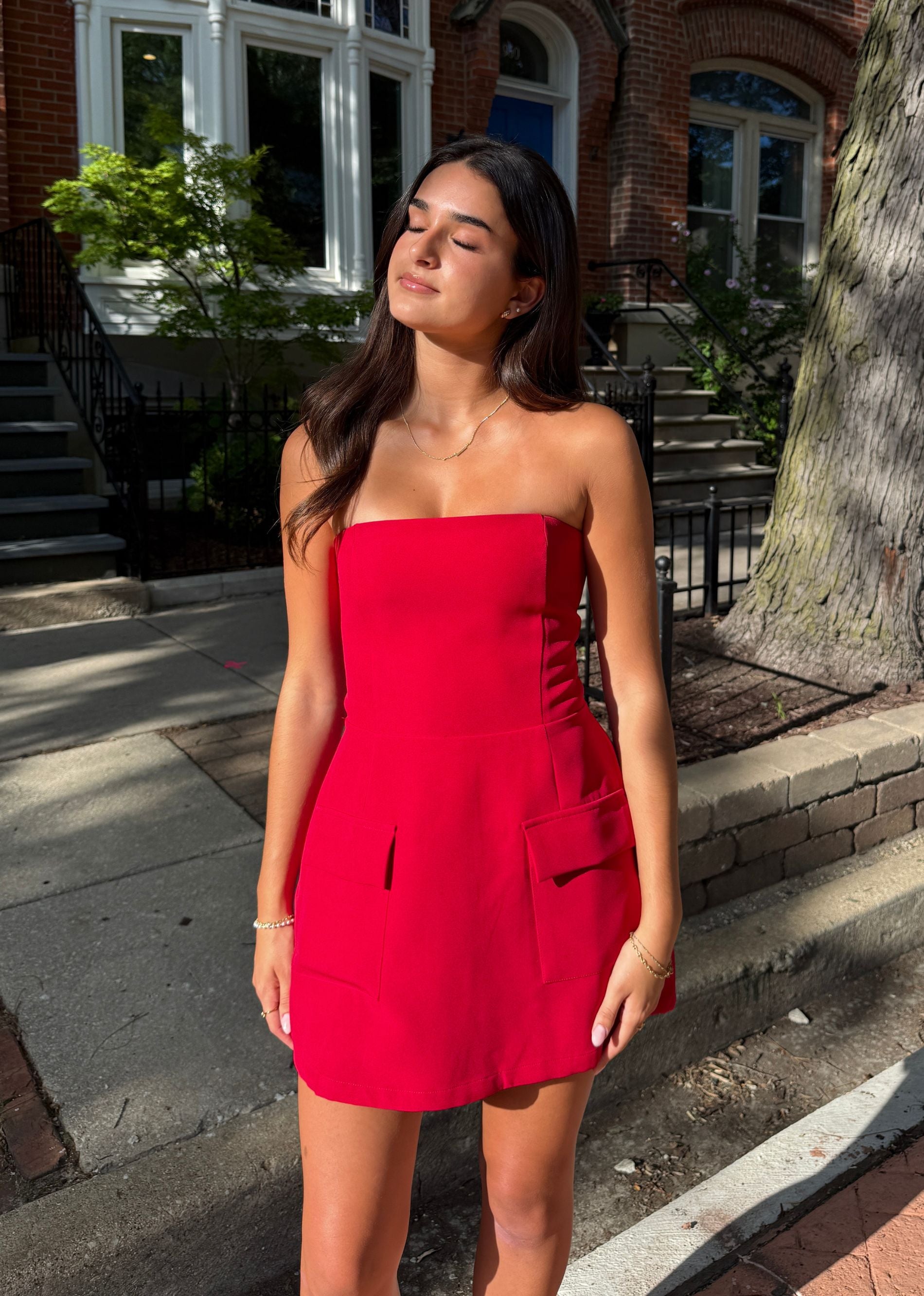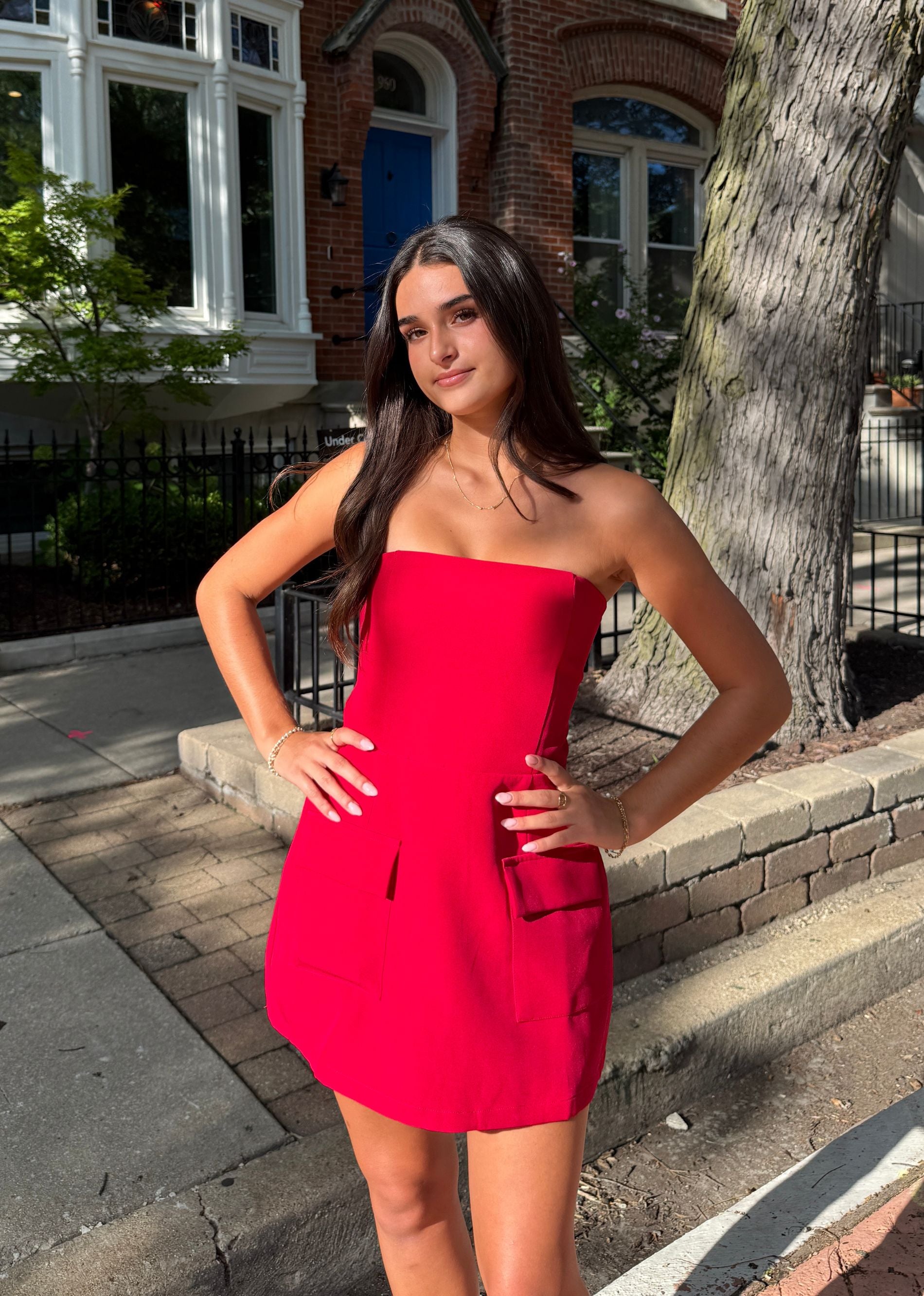 Elegant, flattering, and forever chic — the Timeless Dress is a strapless A-line mini with a silhouette that cinches the waist and flows effortlessly. Designed with a smocked, stretchy back plus a zipper and clasp closure, this piece balances structure and comfort. Built-in shorts keep it easy to wear, while hidden front pockets add the perfect practical touch.
