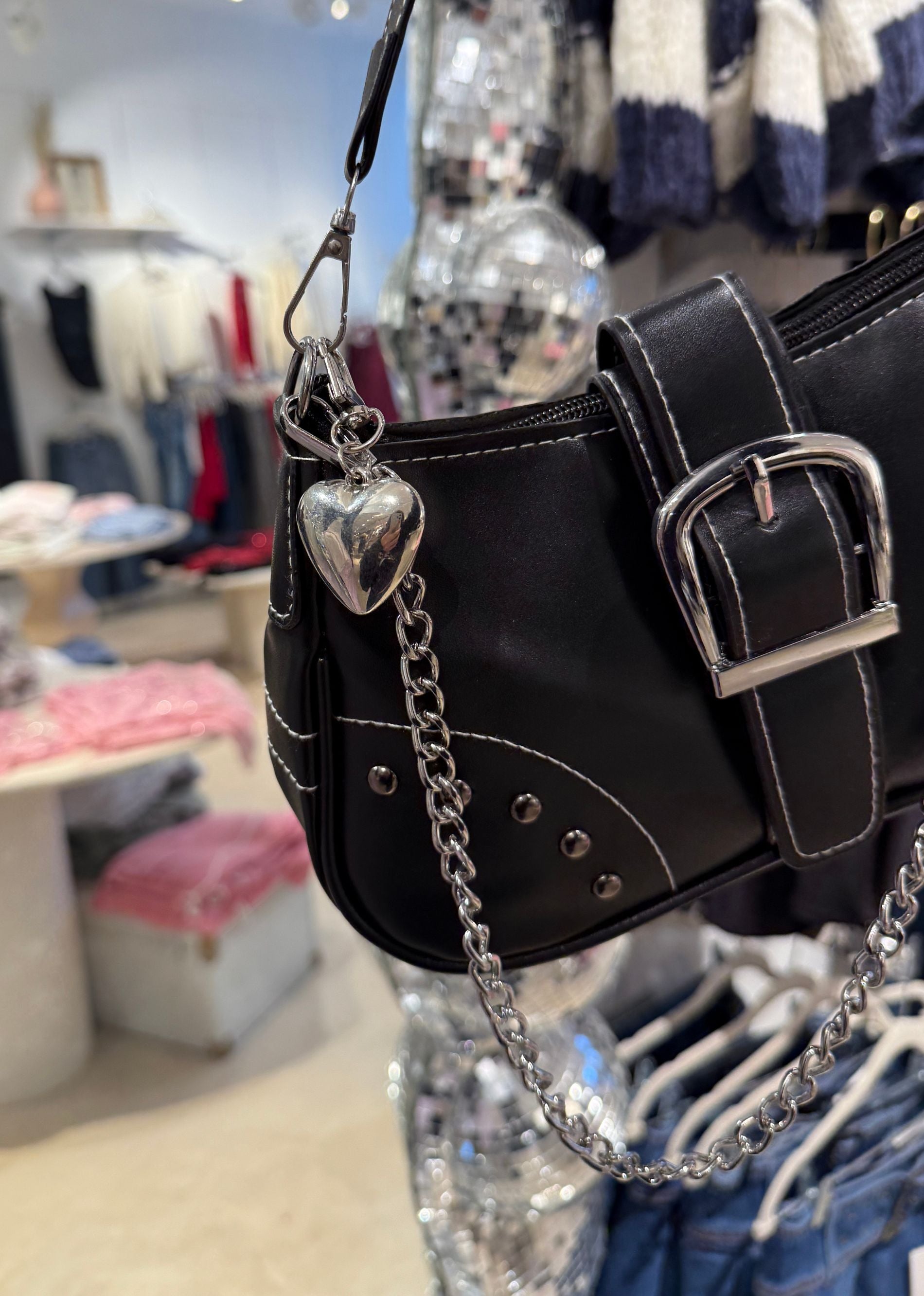 Add a sweet, stylish touch to any bag with this Silver Heart Bow Flower Bag Charm. Featuring a mix of heart, bow, and flower charms, it’s a playful accessory perfect for bringing a little extra charm to your everyday look.
