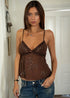 Soft, flirty, and a little bit sparkly. This sheer chiffon babydoll cami top is made to stand out. Designed with a flowy silhouette and delicate sequin detailing, it catches the light in the prettiest way. The brown tone keeps it effortlessly cool, while the bow detail adds a sweet, feminine touch. Perfect for layering over a bralette or styling with denim for a going-out look that feels both playful and elevated.