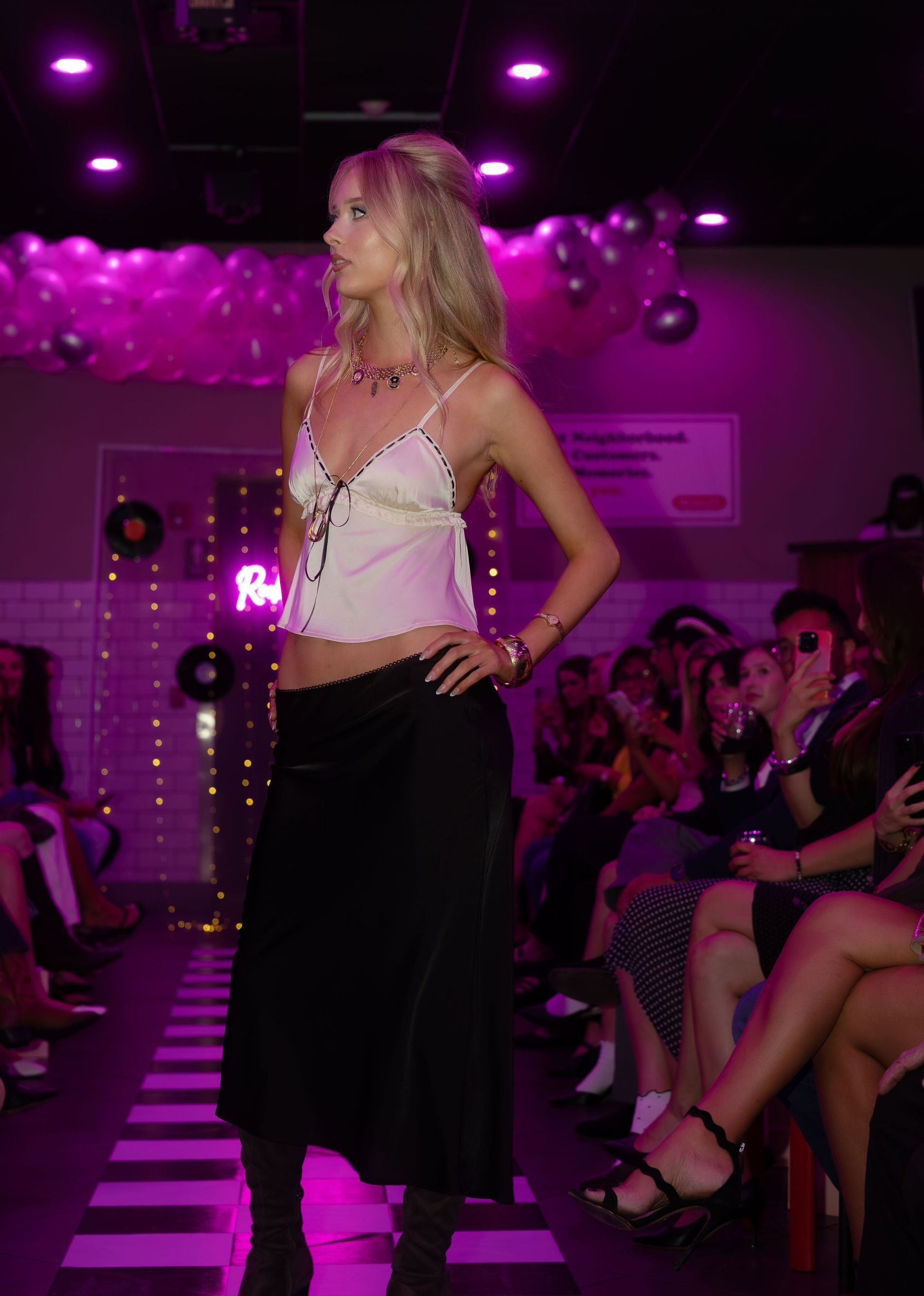 This black satin midi skirt is the definition of sleek sophistication. Designed with a soft, silky finish that drapes beautifully, it moves effortlessly with every step. The mid-length cut gives it a timeless, flattering shape—perfect for dressing up or down. Pair it with a fitted top and heels for a chic night-out look, or style it with a cozy sweater for an elevated everyday outfit. A classic piece that adds instant polish to any wardrobe.