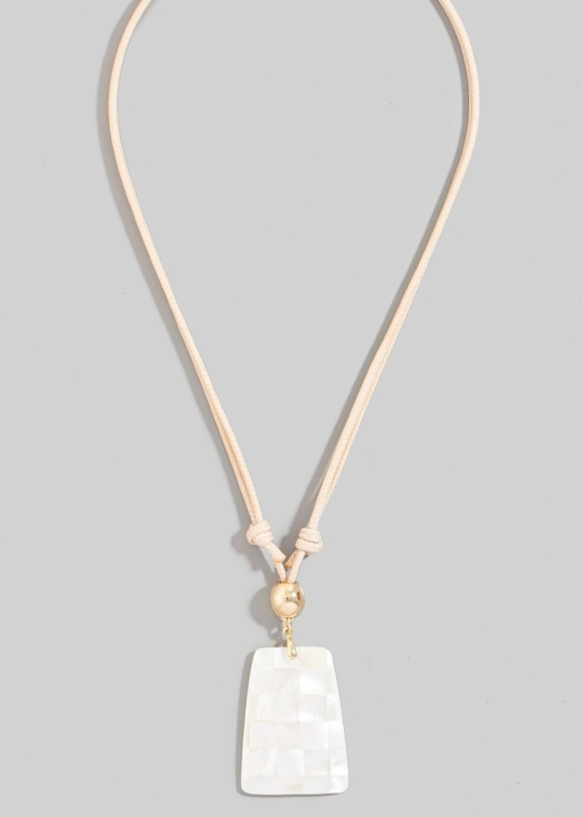 Soft, beachy, and effortlessly cool. This layered cord necklace features a cream white pearl shell grid pendant that instantly elevates your look. Designed with a layered style for that perfectly styled vibe, it adds texture and dimension without even trying. Pair it with tanks, dresses, or swimwear for an easy, coastal-inspired look that feels both trendy and timeless.