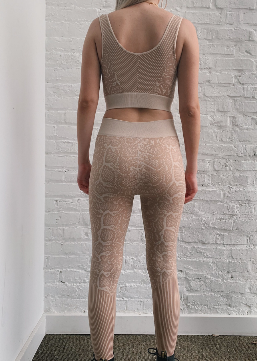 The perfect stylish workout leggings or yoga pants, these one size fits all seamless leggings are an essential basic. They feature a snake skin pattern throughout.