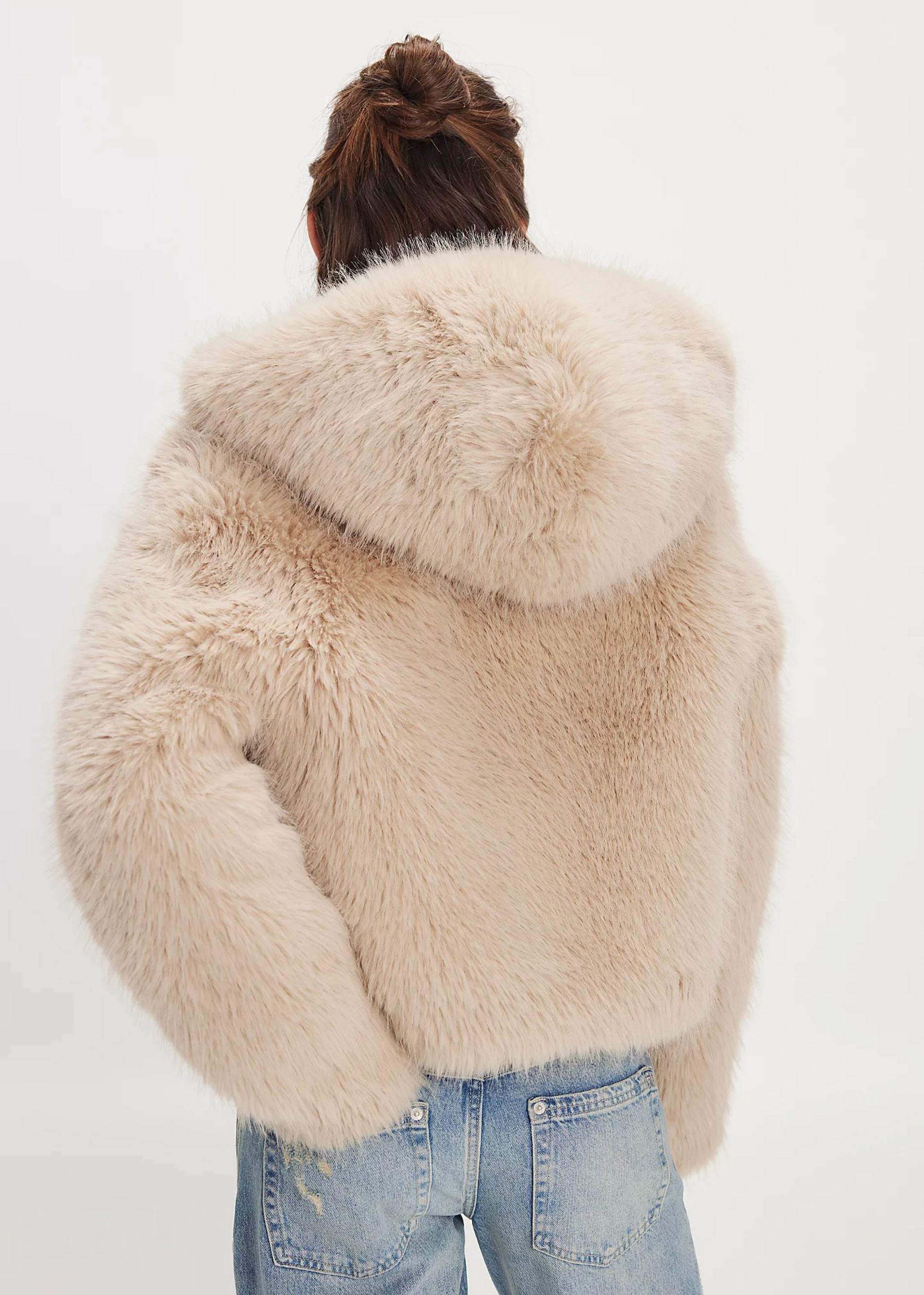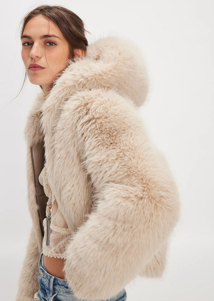 Free People Louder Please Fur Hooded Jacket ★ Almond