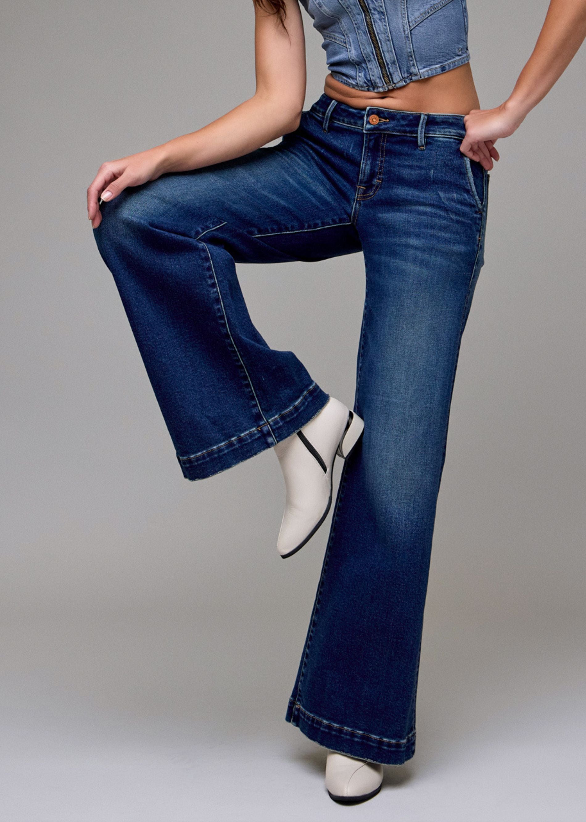 Meet your new go-to denim. The After Midnight Flare Jeans are the perfect low rise bootcut jeans designed to flatter and elongate the legs. Crafted in a rich dark wash denim, these women’s flare jeans deliver an effortlessly expensive look that never goes out of style. With a comfortable stretch fit and timeless silhouette, they’re an everyday closet staple you can dress up with heels or keep casual with sneakers and a baby tee. Classic, versatile, and endlessly wearable, these jeans belong in every modern wardrobe.