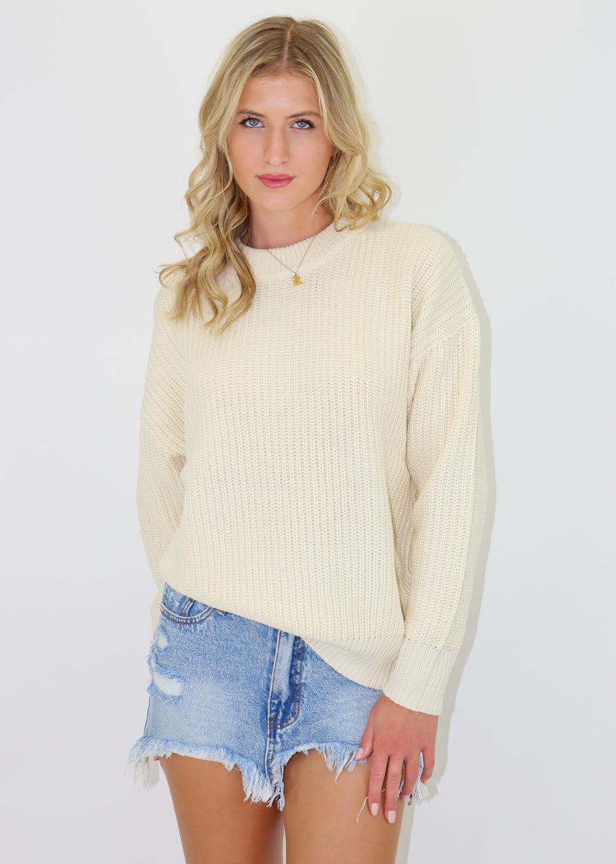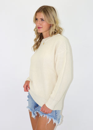 This oversized ribbed sweater is both stylish and comfy! This sweater is a perfect closet staple. Style with jeans or a cute mini skirt for a fashion forward look!