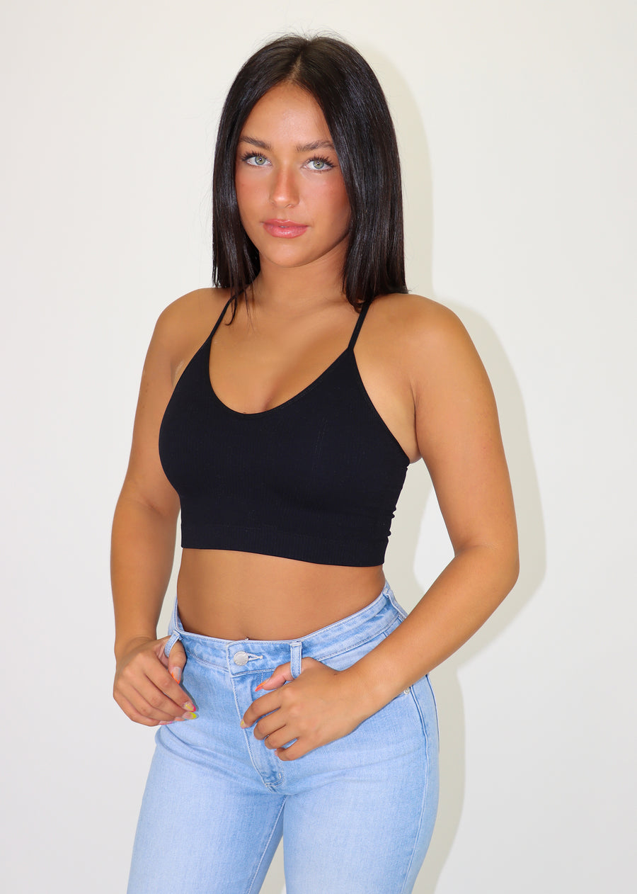 This cropped ribbed tank top is the perfect everyday tank. It features padding for extra support and has a flattering scoop neckline. Wear it with your favorite sweats or dress it up some fun pants or a skirt!