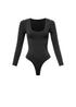 This black seamless long-sleeve bodysuit is the ultimate wear-with-anything essential. Designed with a flattering scoop neckline and a smooth, body-hugging fit. It’s soft, stretchy, and made to move with you. The seamless construction keeps the look clean and polished, easy for everyday wear. A true closet staple you’ll reach for again and again.