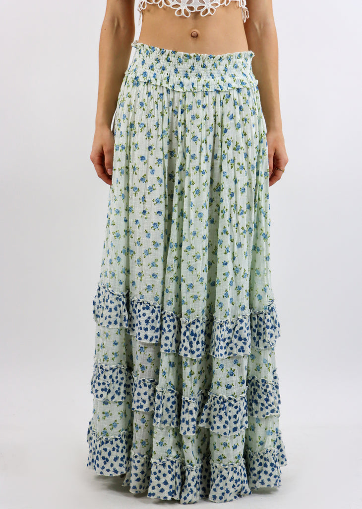 Free People Brynn Printed Maxi Skirt ★ Blue Floral