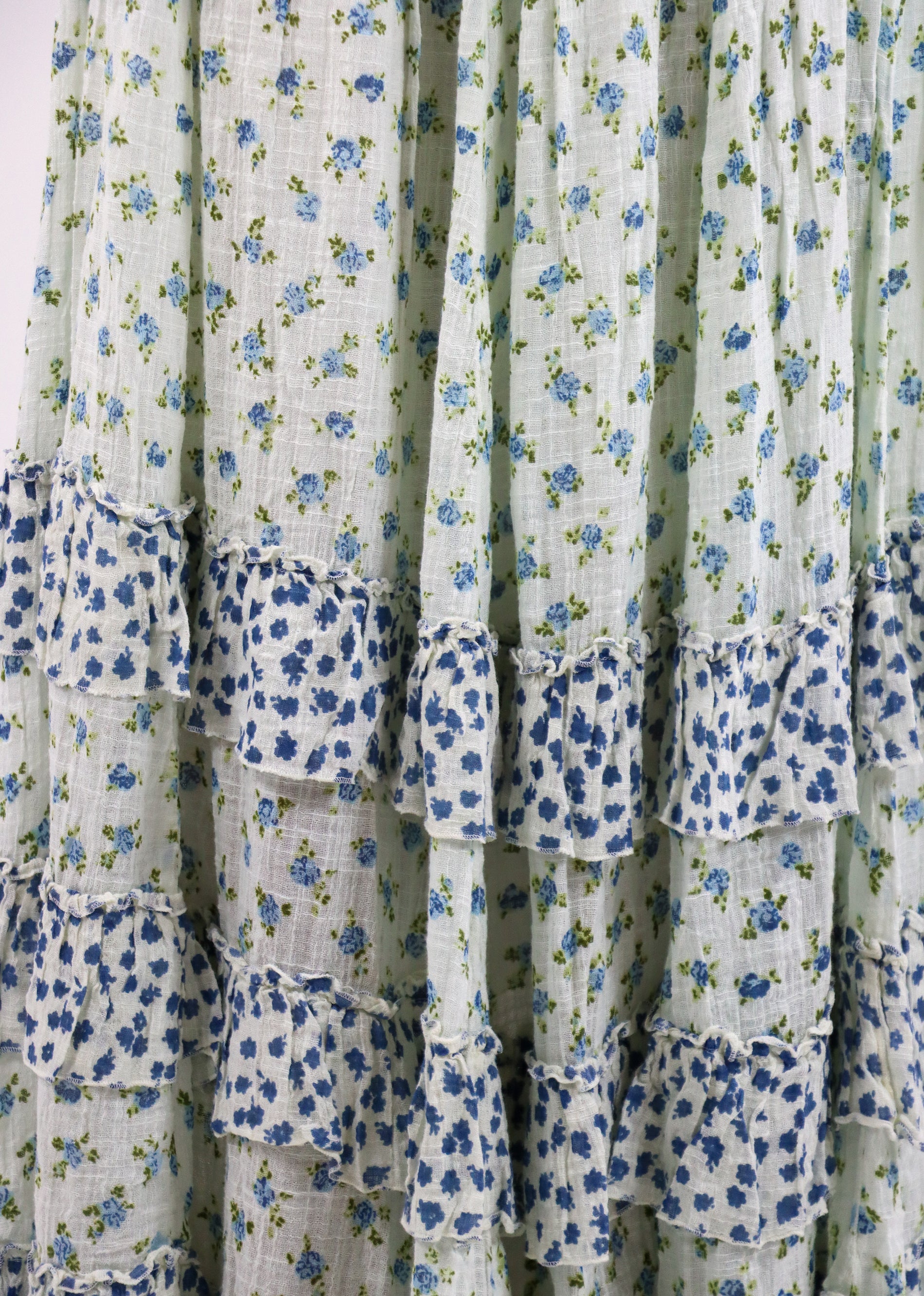 Float through your day in the Free People Brynn Printed Maxi Skirt, a breezy essential that brings boho charm to any outfit. Crafted with a soft cotton-viscose blend, this tiered maxi features a mid-rise, pull-on design with an elastic waistband for a comfortable, flattering fit. The delicate ditsy floral print and ruffled tiers add a romantic, free-spirited vibe that's perfect for everything from beach strolls to weekend brunches. Style it with a cropped tank or denim vest for an effortlessly cool, laid-back look. This skirt is a must-have for adding a touch of whimsy to your warm-weather wardrobe.