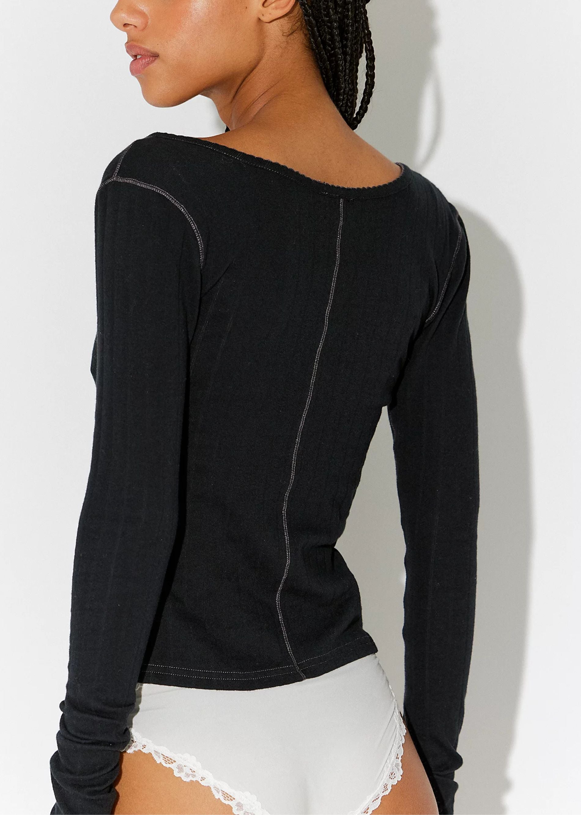 This Free People cotton pointelle top is cozy, cute, and effortlessly versatile. Designed with a scoop neckline, long sleeves, and a subtle pointelle pattern, it brings delicate texture to your everyday wardrobe. The front button closure adds adjustable style and a soft contrast stitch detail gives it just a touch of charm. Lightweight, breathable, and perfectly soft. This top is made to layer, lounge, or pair with your favorite jeans for an easy, put-together look.
