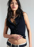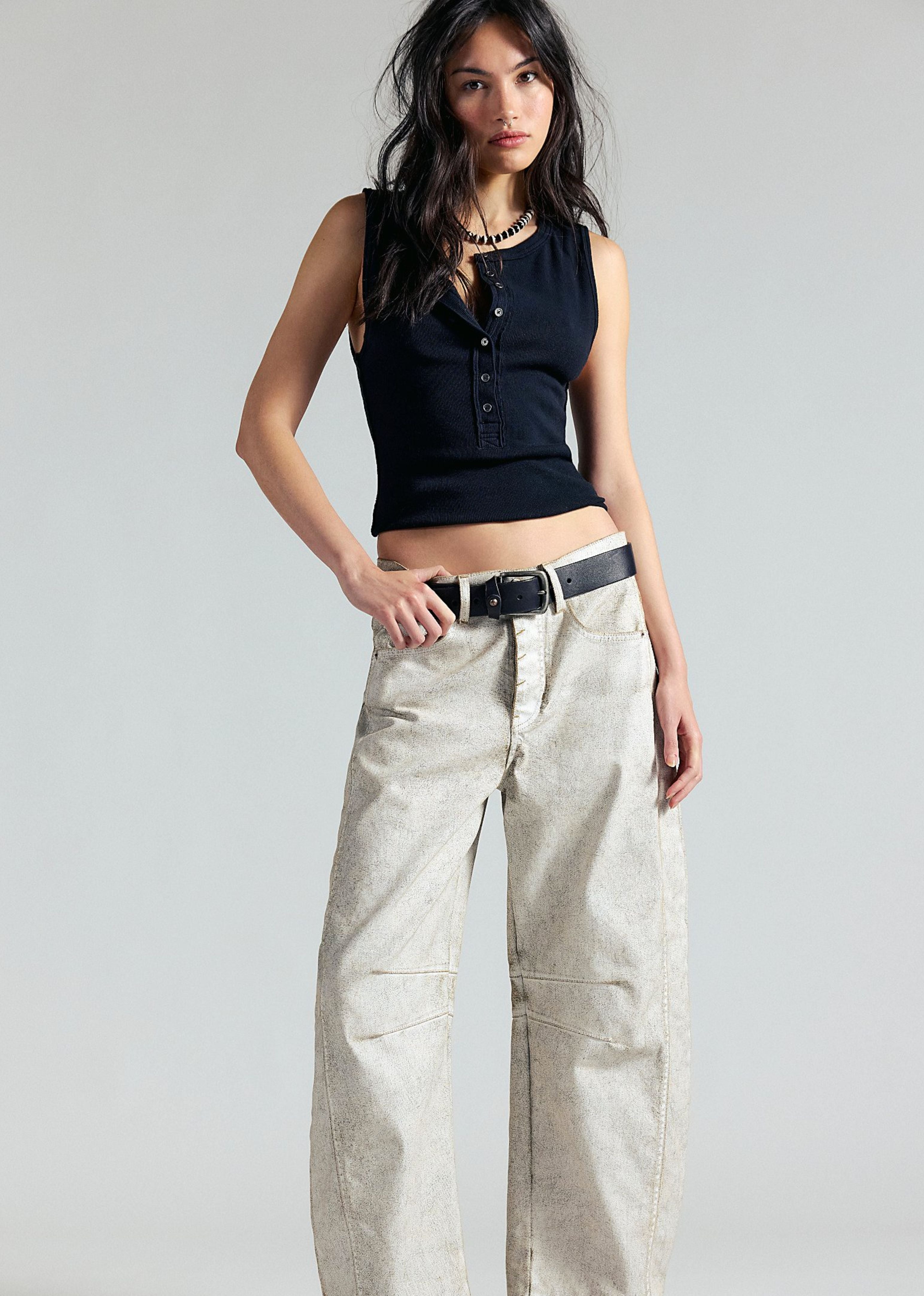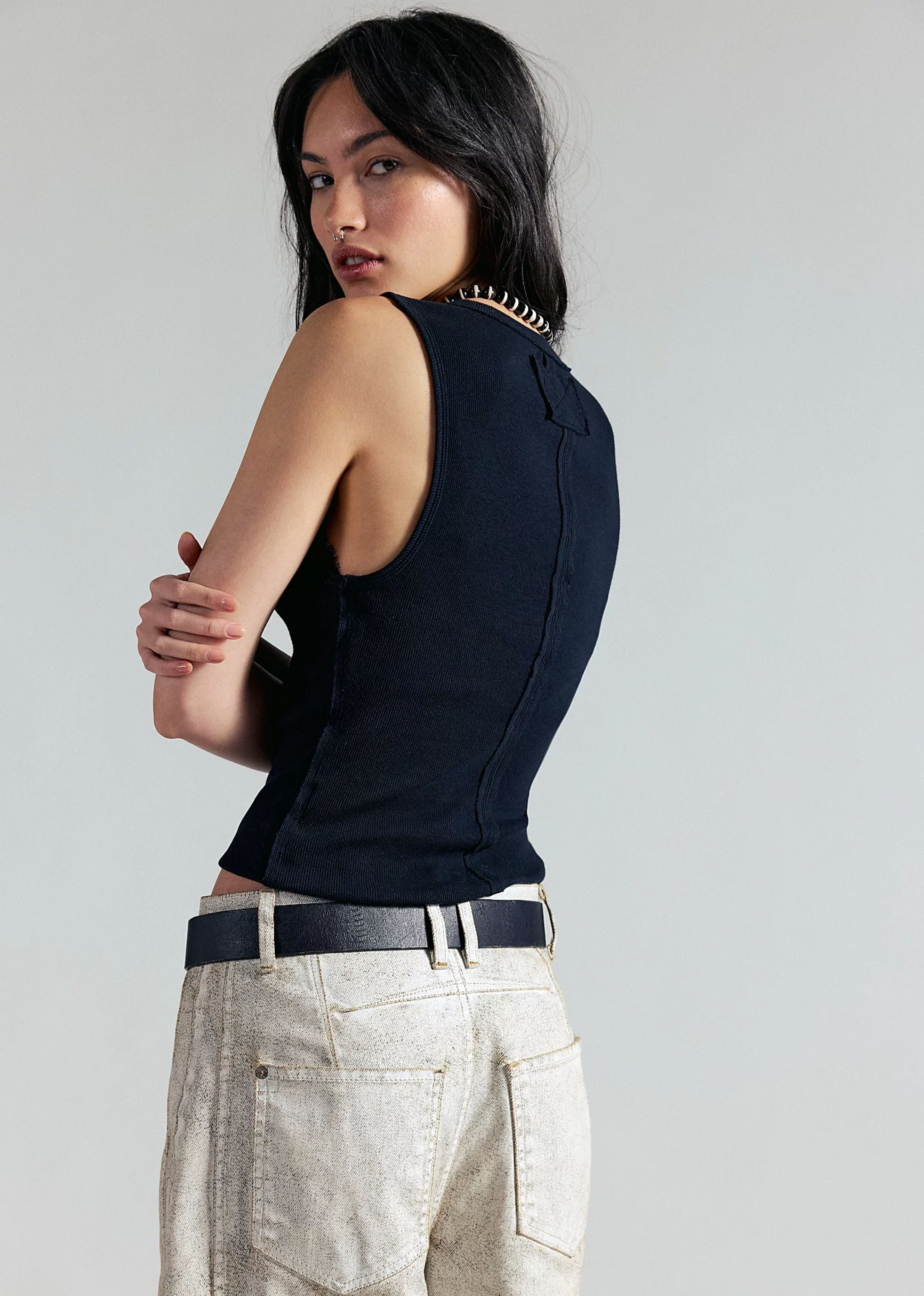 It doesn’t get more essential than this. This black henley tank is designed in a soft, stretchy ribbed cotton blend with a flattering fitted silhouette you’ll want to wear on repeat. The button-front henley neckline and exposed seam detailing give it that effortlessly cool, lived-in vibe. Perfect for layering or wearing solo, it pairs with everything from denim to lounge sets for an easy, everyday look.