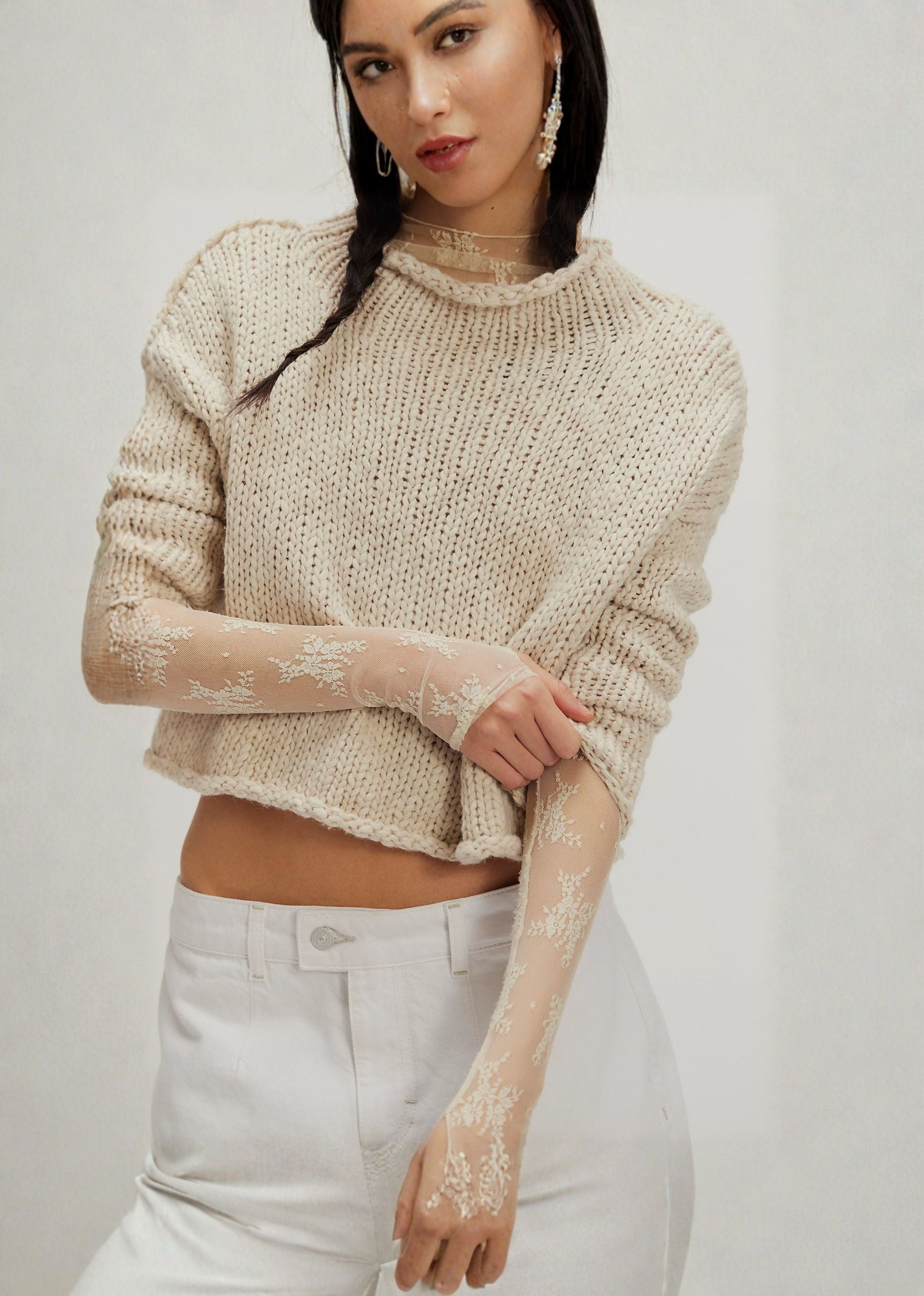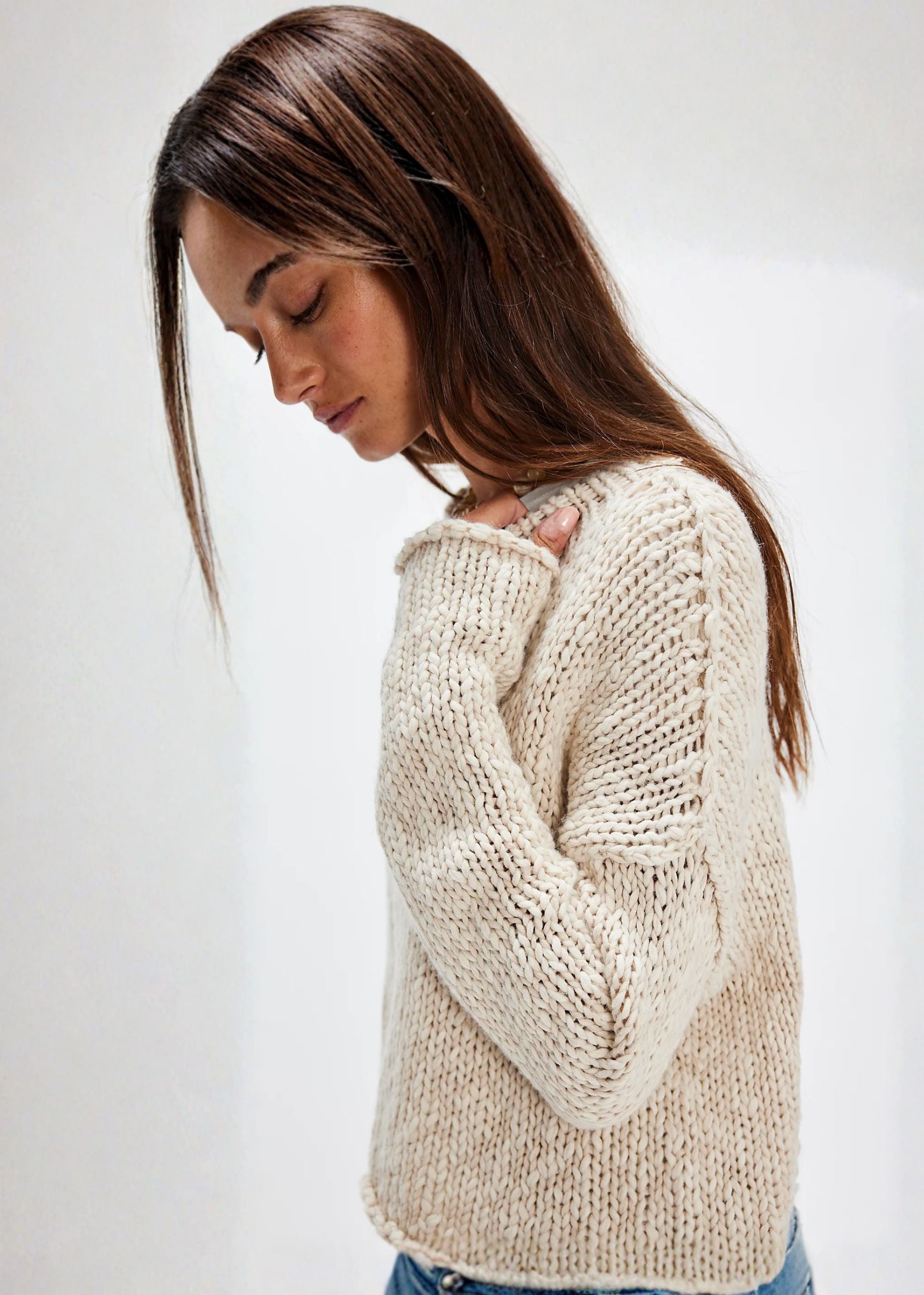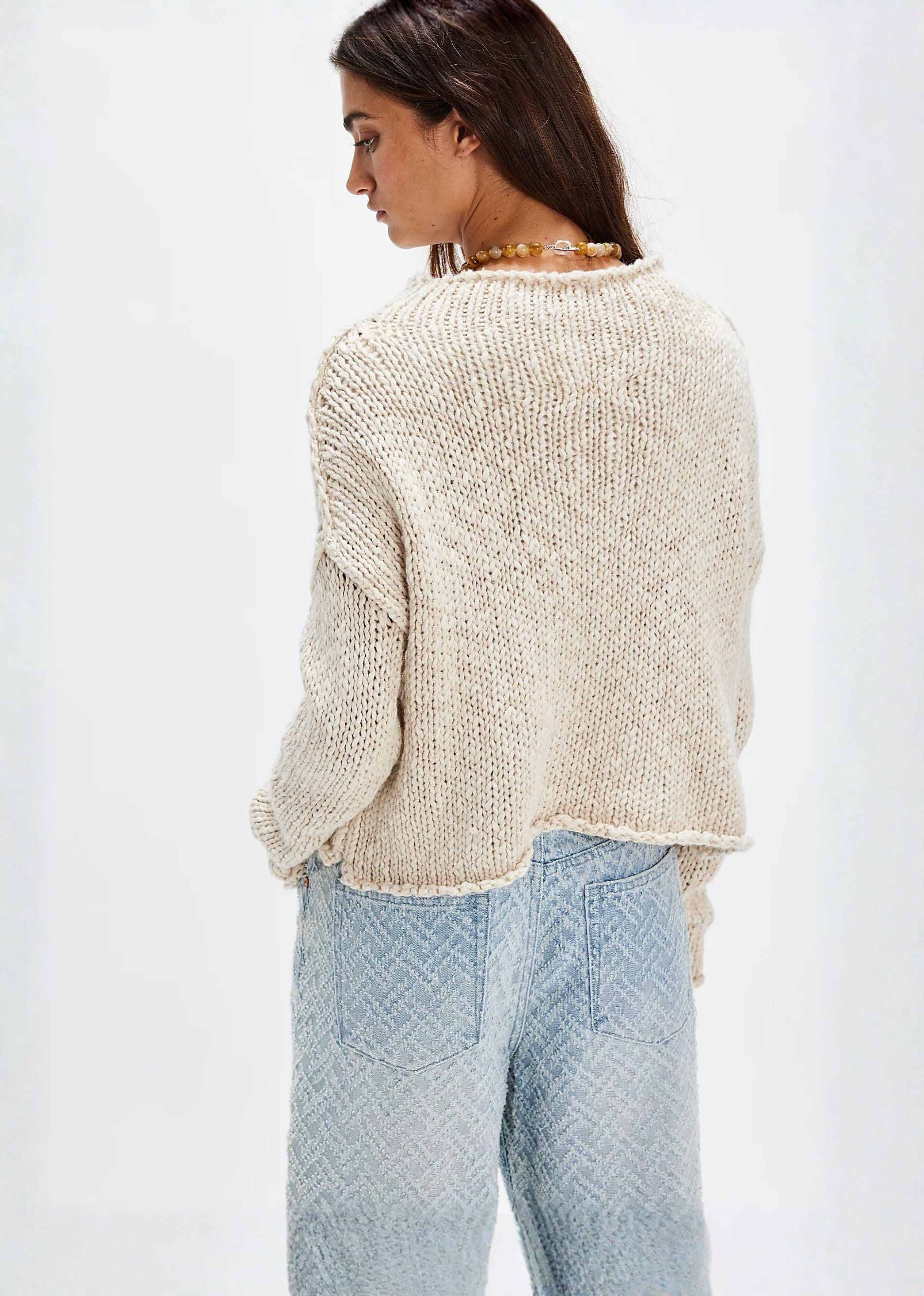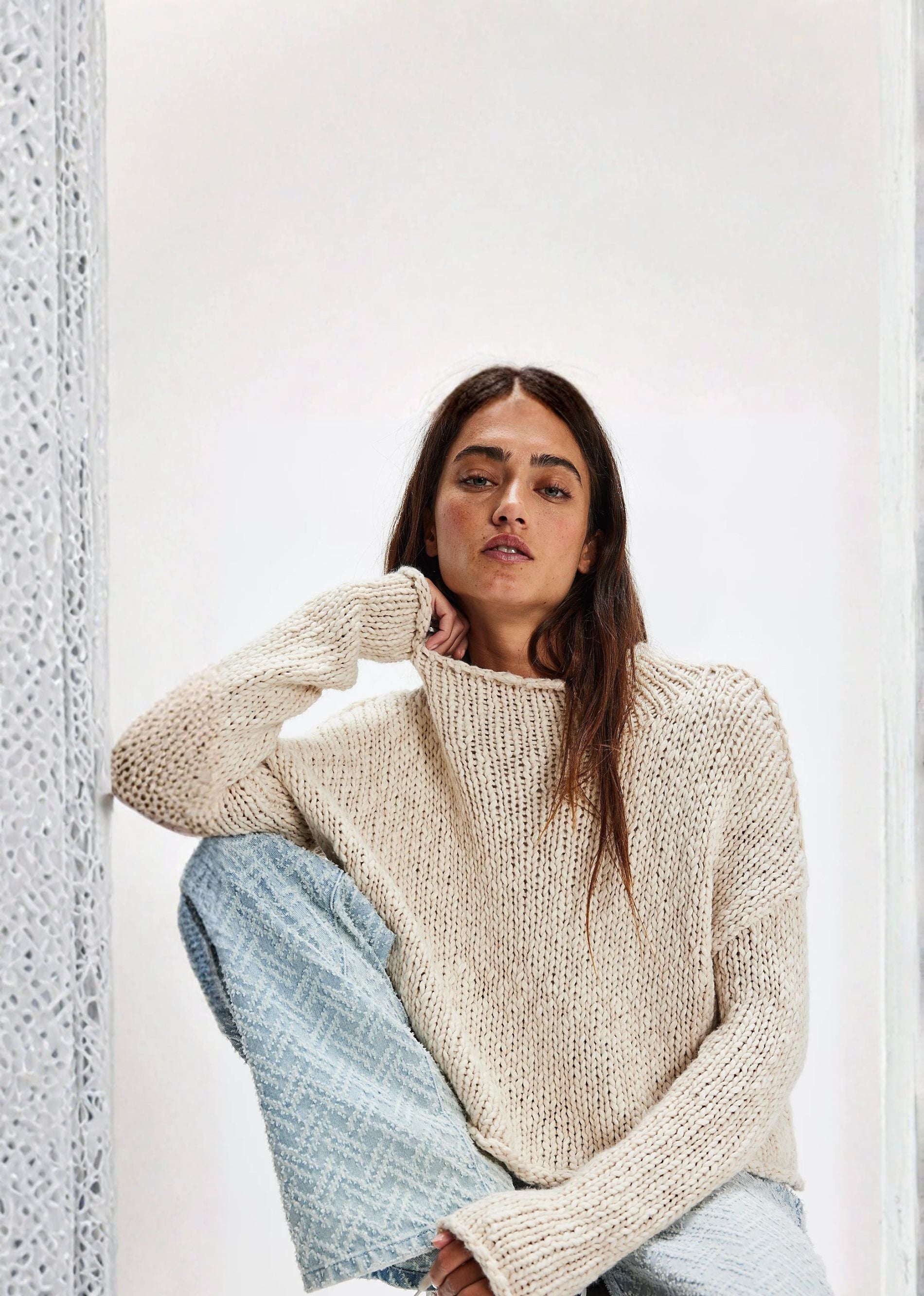This Free People knit sweater is the definition of effortless cool. Designed in a soft tea-colored hue, it features a mock neckline, raw hem, and cropped fit that feels relaxed yet elevated. The lightweight, breathable knit makes it perfect for layering or wearing on its own when you want an easy, laid-back look with a little texture. Cozy, casual, and totally timeless. This is the kind of sweater you’ll reach for on repeat.