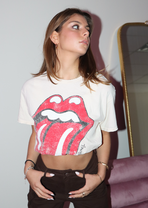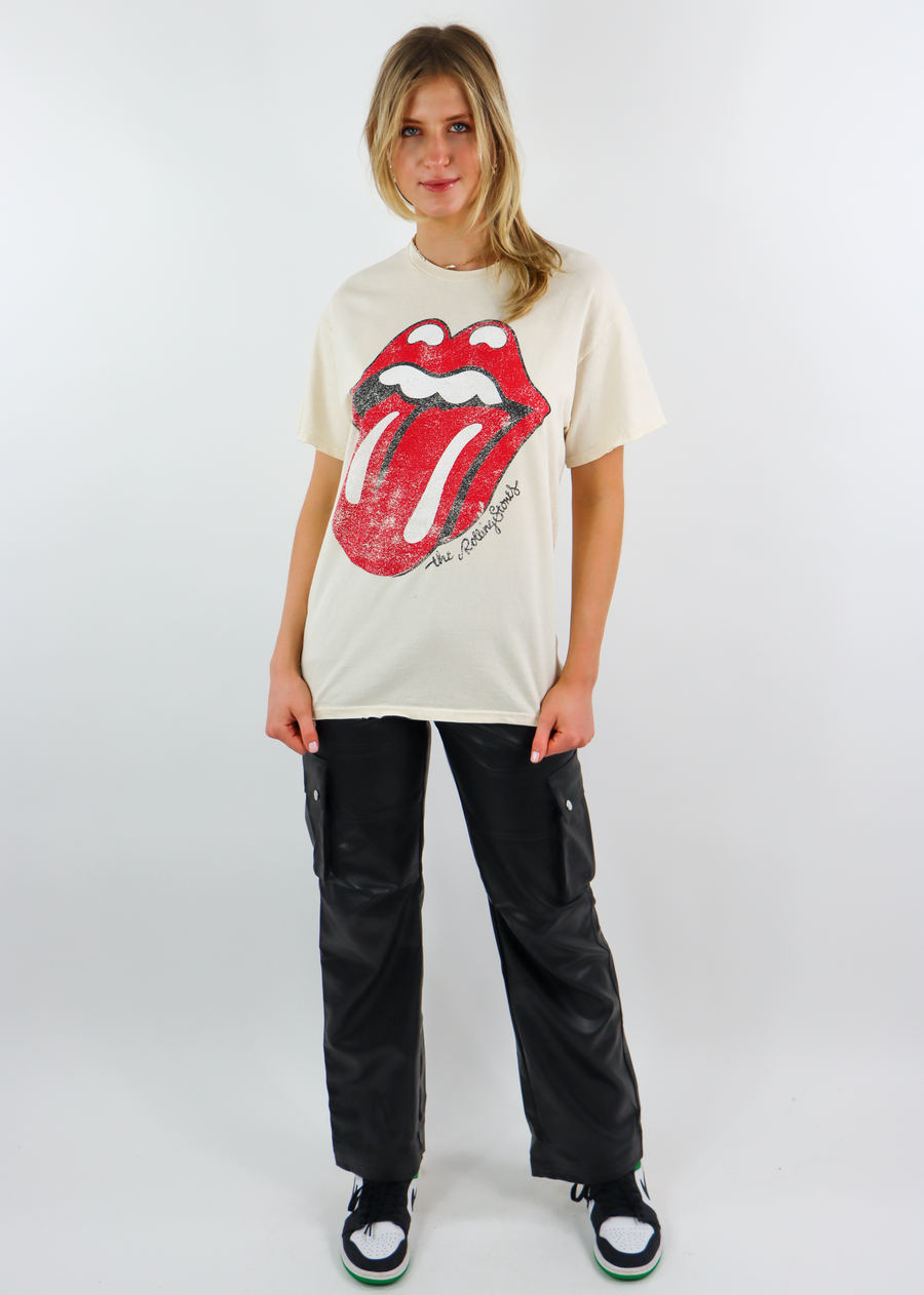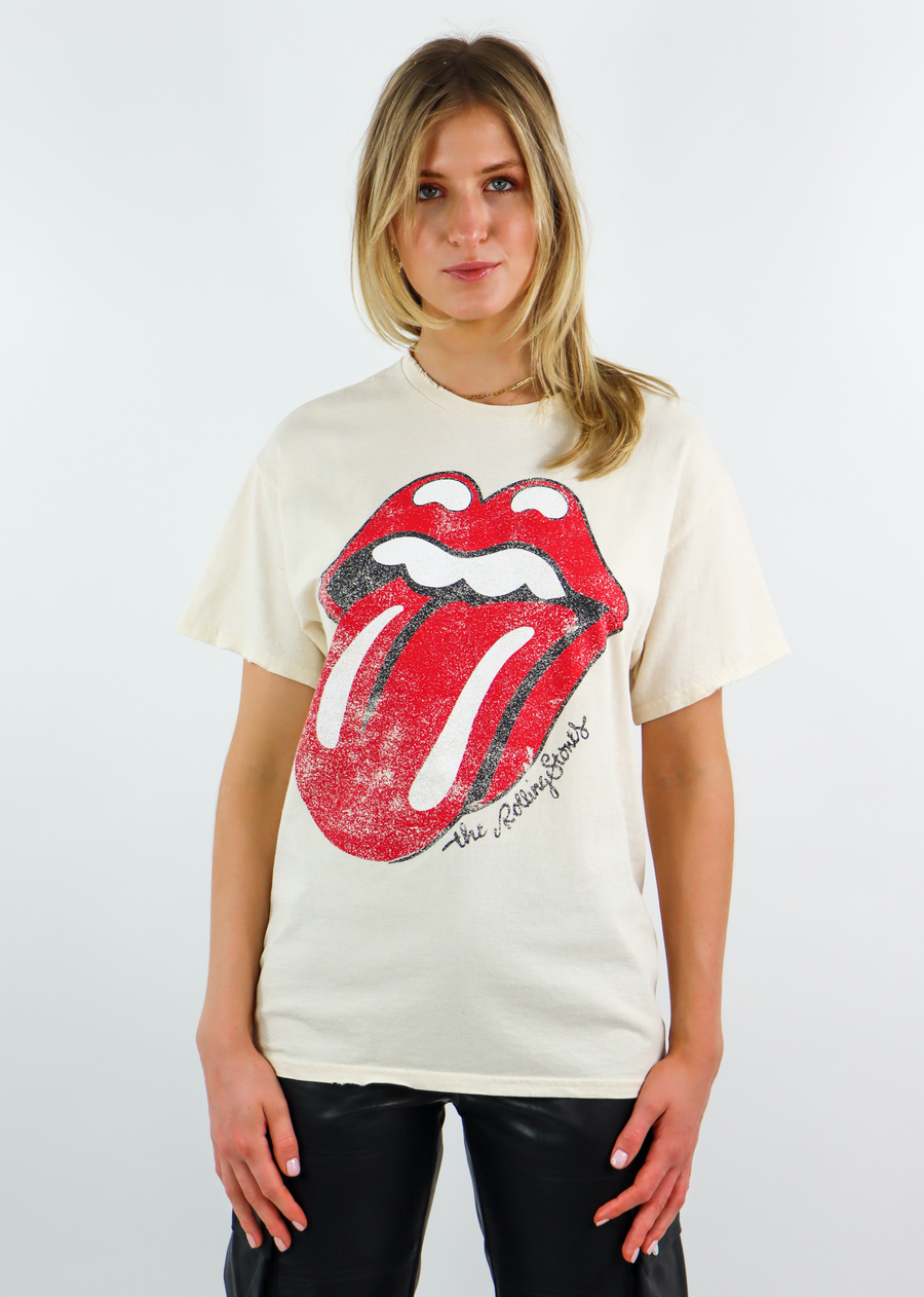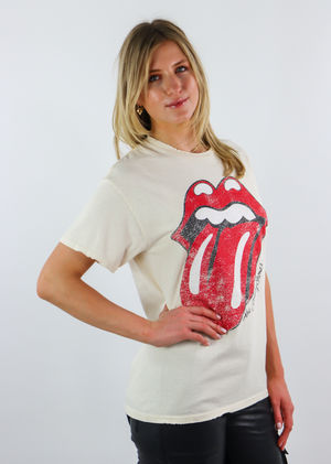 We are loving the band graphic tees! This Rolling Stones tee features their classic tongue logo on the front. The tee has subtle distressed detailing giving it that vintage feel. Wear it with your favorite jeans and sneakers for that casual everyday look!