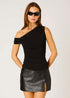 This black one-shoulder tank top is the perfect mix of sleek and effortless. Designed with an off-the-shoulder neckline and ruched detailing, it creates a flattering, fitted silhouette that hugs just right. The soft, stretchy fabric and full-length fit make it easy to dress up or down, whether you’re heading out or keeping it low-key. A classic black staple with a modern edge.
