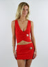 Make a statement in this red V-neck wrap crop top, designed with a bold low-cut front and a touch of coastal charm. The wrap silhouette creates a flattering fit, while the gold starfish pendant detail adds a unique and playful accent. Cropped to hit just right at the waist, it pairs effortlessly with the matching skirt. Whether you're headed out on the town, to the beach, or even dinner this top brings the perfect mix of flirty and fun.